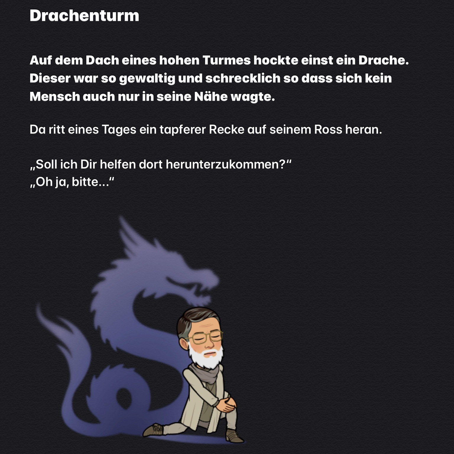 ![]() ![]() ![]() ![]() ![]() ![]() ![]() ![]() ![]() ![]() RE: Lesung mit Rubeus Helgerud - Rubeus Helgerud - 13.04.2020 14. April, 20:00 Uhr im Theater unter dem Sternenzelt Das entschwundene Land Am Tag nach Ostern lese ich Euch eine Liebesgeschichte vor - in ihr geht es auch ums Warten-können und Warten-müssen. Und - es ist die Liebesgeschichte von Astrid Lindgrens Eltern, von A.L. wunderschön in Worte gefasst. Bis zum Dienstagabend hop://dorenas-world.de:8002/Santas Refugium/84/247/5519 RE: Lesung mit Rubeus Helgerud - Dorena Verne - 15.04.2020 Danke für die sehr schöne Lesung, Rubeus. :-)