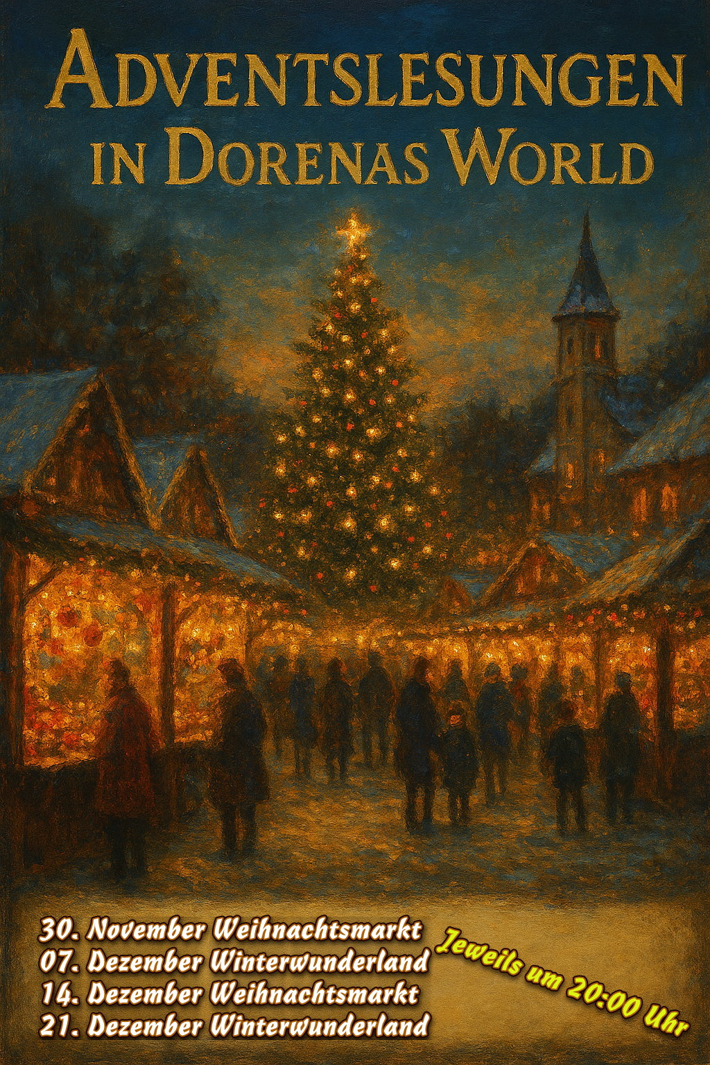 RE: Weihnachtsmarkt Und Wintersport - Rubeus Helgerud - 15.12.2024 Lesung am 3. Advent Am Sonntag den 15. Dezember gibt es die nächste Adventslesung mit Rubeus Helgerud. Ab 20:00 Uhr gibts Weihnachtsstimmung im Märchenzelt auf Dorenas Weihnachtsmarkt dorenas-world.de:8002:Weihnachtsmarkt Weihnachtliche Vormusik gibts wieder ab 19:30 zu hören. Schnappt Euch Glühpunsch und setzt Euch auf die Kissen ins gut beheizte Märchenzelt und hört ein wenig zu. Wir freuen uns auf Euch alle. RE: Weihnachtsmarkt Und Wintersport - Dorena Verne - 16.12.2024 RE: Weihnachtsmarkt Und Wintersport - Rubeus Helgerud - 22.12.2024 Lesung zum 4. Advent Am Sonntag den 22. Dezember gibt es den adventlichen Endspurt - die 4. Adventslesung mit Rubeus Helgerud. Ab 20:00 Uhr gibts Weihnachtsstimmung im Märchenzelt in Santas Winterwunderland (DW) dorenas-world.de:8002:Santas Winterwunderland Weihnachtliche Vormusik gibts wieder ab 19:30 zu hören. Kommt ins gut beheizte Märchenzelt und hört ein wenig zu. Wir freuen uns auf Euch alle. RE: Weihnachtsmarkt Und Wintersport - Dorena Verne - 23.12.2024 RE: Weihnachtsmarkt Und Wintersport - Rubeus Helgerud - 23.11.2025 Liebe Freunde und Bewohner der virtuellen Welten. Dorena hat heute früh die beiden Sims "Wintersport" und "Weihnachtsmarkt" wieder aktiviert. Somit laden wir wieder zu fröhlichen Winteraktivitäten ein. Traditionell gehören da auch meine Adventslesungen an den Sonntagen dazu (abwechselnd im Märchenzelt auf dem Weihnachtsmarkt und im Winterwunderland)- in diesem Jahr lauten die Daten: 30. November - Weihnachtsmarkt ----- dorenas-world.de:8002:Weihnachtsmarkt 07. Dezember - Winterwunderland ----- dorenas-world.de:8002:Santas Winterwunderland 14. Dezember - Weihnachtsmarkt ----- dorenas-world.de:8002:Weihnachtsmarkt 21. Dezember - Winterwunderland ----- dorenas-world.de:8002:Santas Winterwunderland An allen Tagen beginnen wir mit der Lesung um 20:00 Uhr - musikalische Einstimmung gibt es ab 19:30. Vor und nach den Lesungen laden wir alle Gäste ein zum Bummel über die winterlichen Plätze unserer Weihnachtsmärkte. |