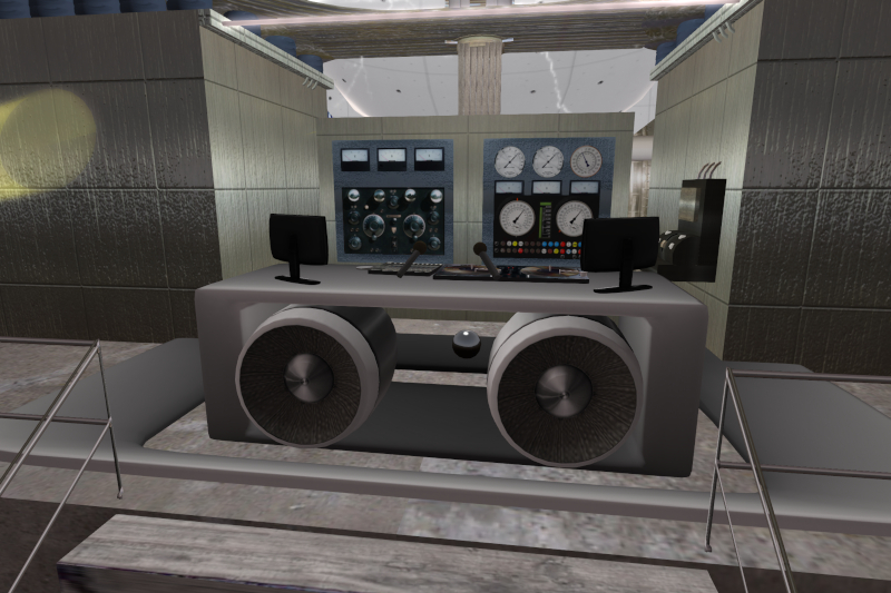 Hier geht der Blick Richtung Infokiosk. Am Tisch sitzt die alte Infodame Bertha senior. Ihre Nachfolgerin, die eigentlich als NPC den Infokiosk hätte bedienen sollen, wurde schon lange nicht mehr gesichtet.