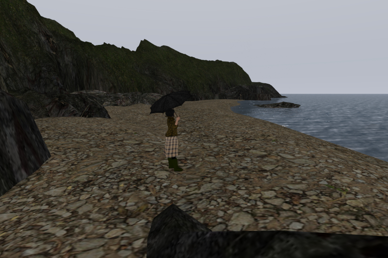 Beim virtuellen Eday wird dringend dazu geraten, sich für Schmuddelwetter zu kleiden und auf gar keinen Fall ein Sonnenbad zu nehmen, das erschreckt die Schafe. Für die Fotos hat Juno sich die Mühe gemacht, EEP so einzustellen, daß es zum immer mal wieder auftretenden Regen paßt und man schon beim Betrachten der Bilder gar keinen Bock hat auf Sonnenbaden. Die Sonne scheint ja eh nicht.