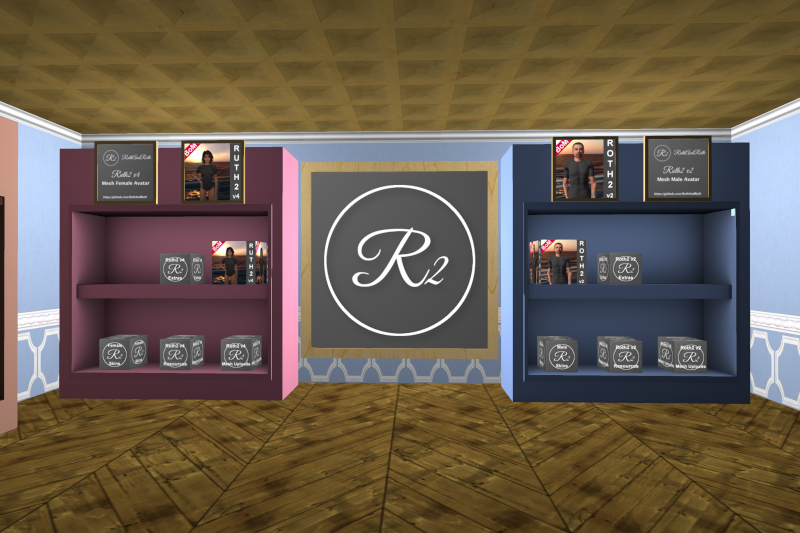 Der Laden führt natürlich die neuen Bake-on-Mesh-Versionen von Roth2 und Ruth2, also Roth2 v2 und als wohl erster Laden außerhalb der RuthAndRoth-Sim überhaupt auch Ruth2 v4. Auch das gesamte Zubehör und Quellmaterial ist dabei.