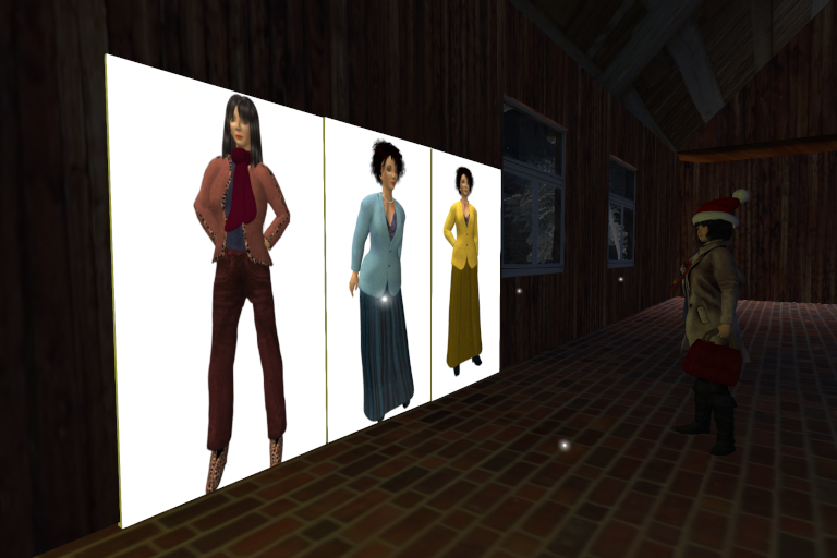 ...und Meshoutfits. Dabei tat es ihr besonders das Outfit mit dem gelben Damien-Fate-Sakko an, das sie im Gegensatz zu dem daneben tatsächlich noch nicht hatte. Selbst der lange Rock fehlte ihr noch, und lange Damien-Fate-Röcke mit Texturen von Klara hat sie nun wirklich reichlich.