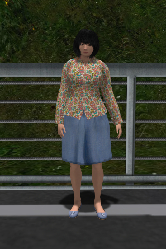 Das Hemd ist ein Damien-Fate-Mesh mit einer Paisley-Textur von Remmy Ravenhurst und eigentlich Bestandteil eines Outfit. Ich weiß gerade nicht, ob Remmy ihre neue Sim, auf der sie ihre Outfits anbietet, schon offiziell eröffnet hat. Der Rock ist von Klara und aus einer anderen Outfit-Box; es war schon etwas kühler, daher der knielange Rock. Die Mary Janes sind von Taarna Welles und passen farblich ziemlich gut zum Rock.