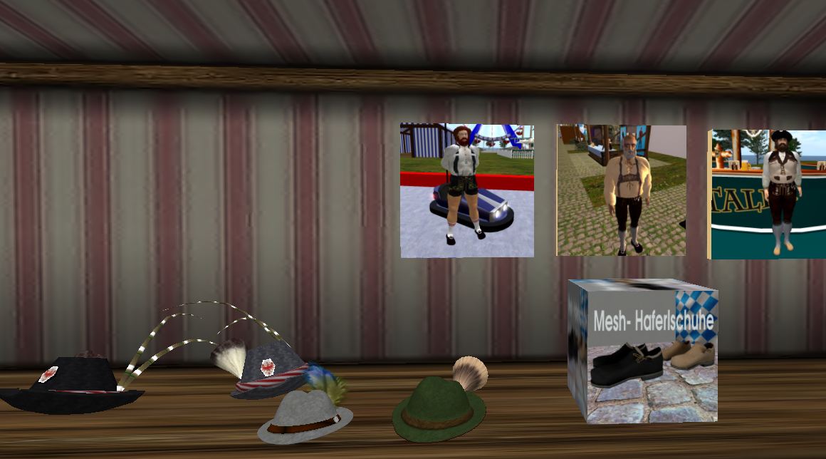 Noch mal ein Hinweis: Am Eingang zur Oktoberfest-Sim gibt es einen Stand mit Damen- und Herren-Trachten, sowie fesche Haferlschuh für den Herrn, diverse Hüte für Damen und Herren, Kropfbänder und so weiter. Des weiteren befindet sich dort ein Teleporter zu geräumigen Umkleidekabinen!