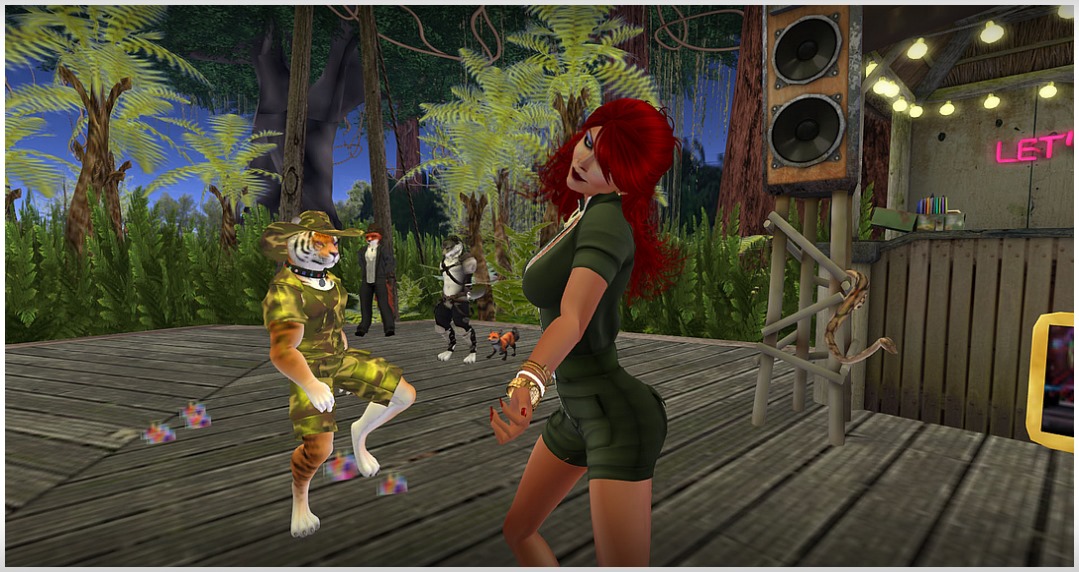 Jungle-Party im TPW. Auf einer neu gestalteten Sim brachten wir im Jungle die Bäume zum wackeln. Mit toller Musik von DJane Loru und DJ Richi wirbelten die vielen Gäste über den Tanzboden. Ein super toller Abend, mit tollen Gästen, einer super Stimmung, viel Spass und wilden Tieren. Einfach super klasse.