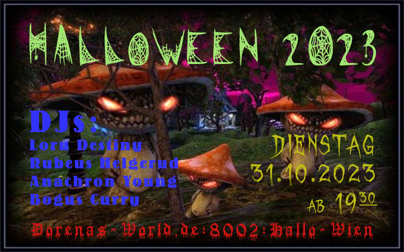 Hier schon mal eine kleine Vorankündigung. Wie jedes Jahr ist bei uns am 31. Oktober wieder eine Halloweenparty auf unserer Region Hallo-Wien in Dorenas World.