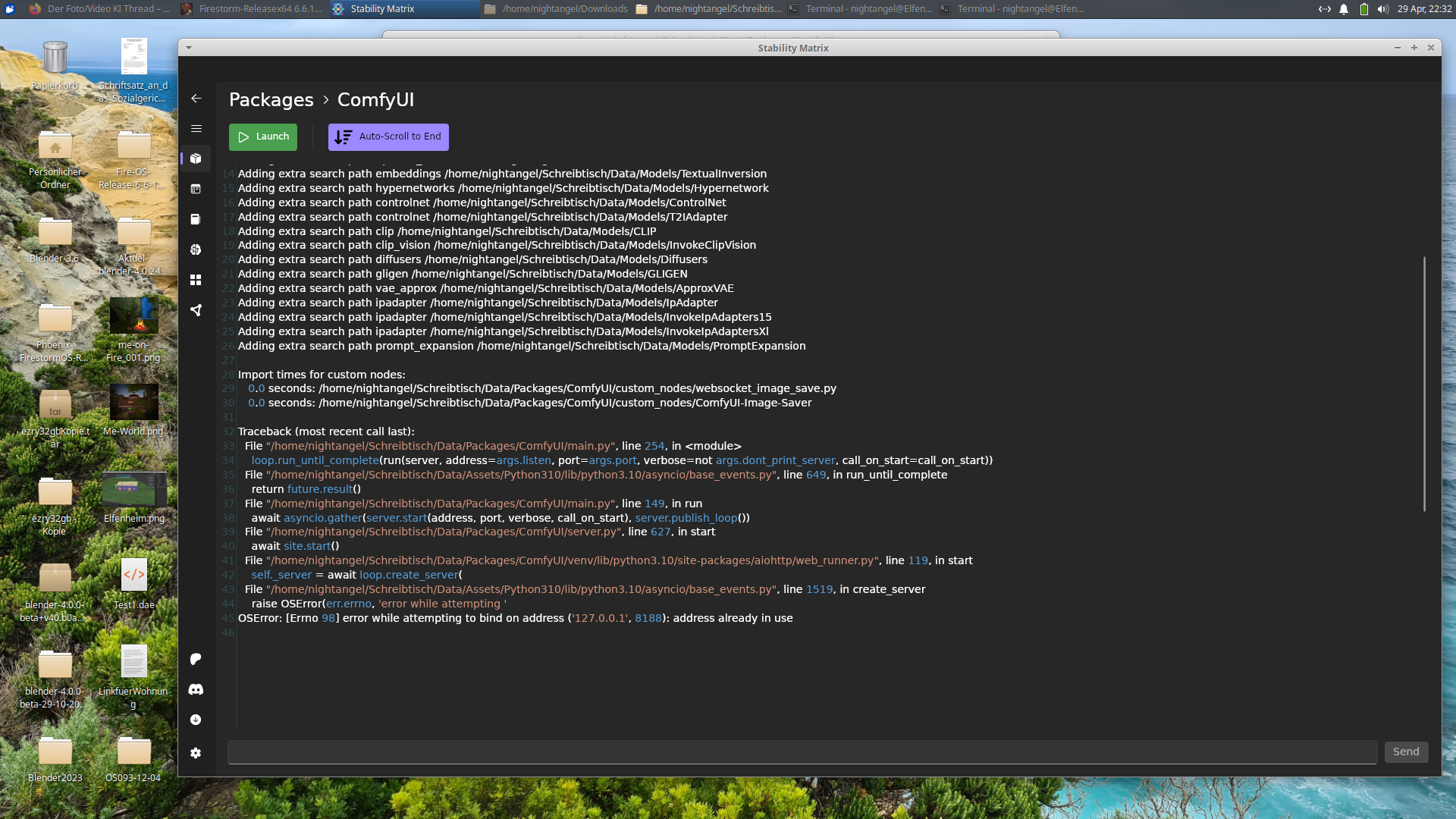 Auf dem 2. Bild sieht man Port 8188 ist bereits in Verwendung, entweder die Anwendung, die den Port verwendet beenden oder einen anderen Port nehmen.