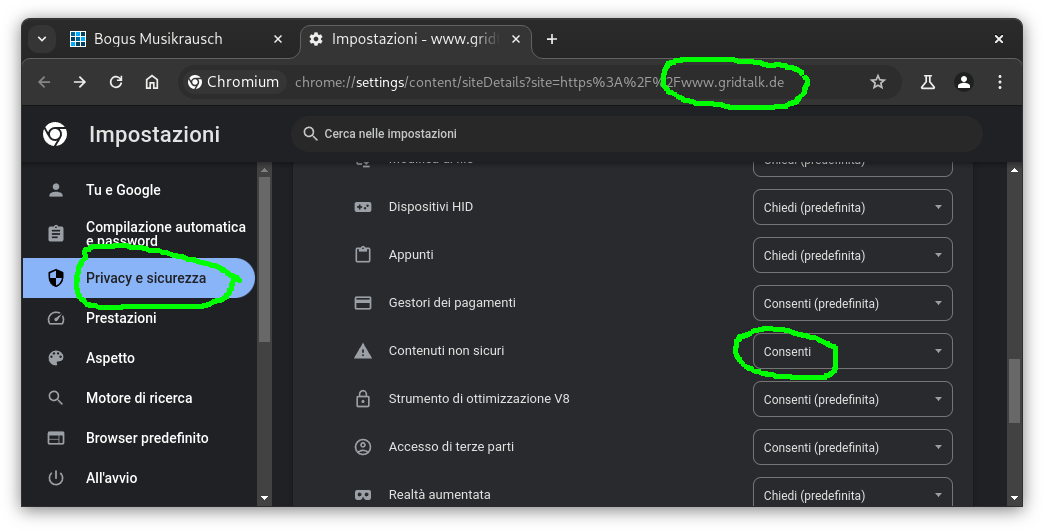 EDIT: Screenshots von meinem Rechner, um Chromium für Gridtalk umzustellen, leider auf italienisch: