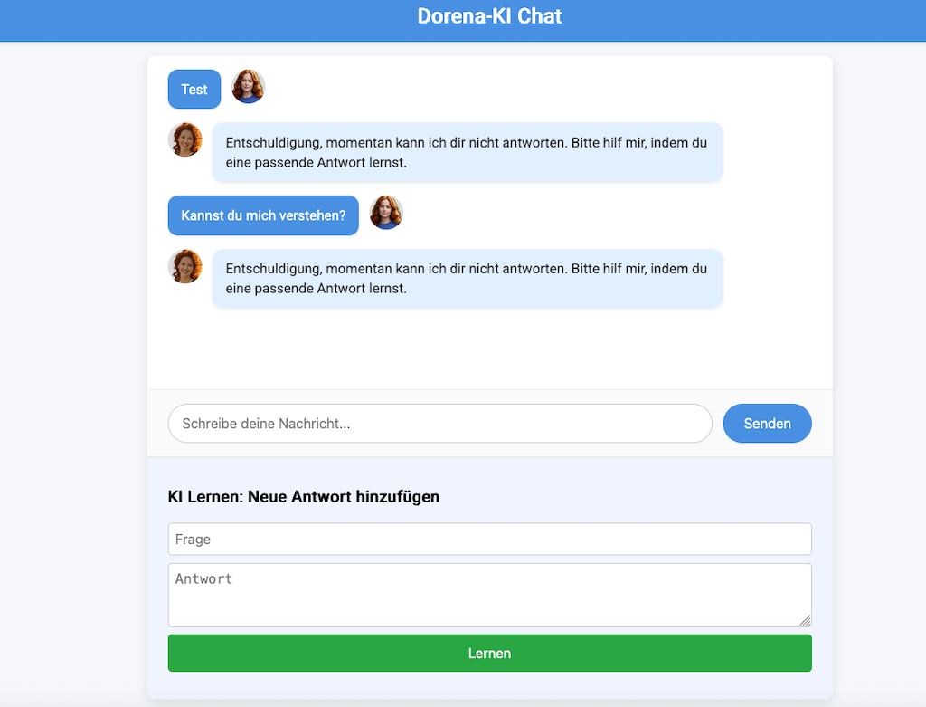 Zum Lernen fragt sie ChatGPT ab, speichert aber die Antworten in einer eigenen Datenbank und "lernt" dadurch.