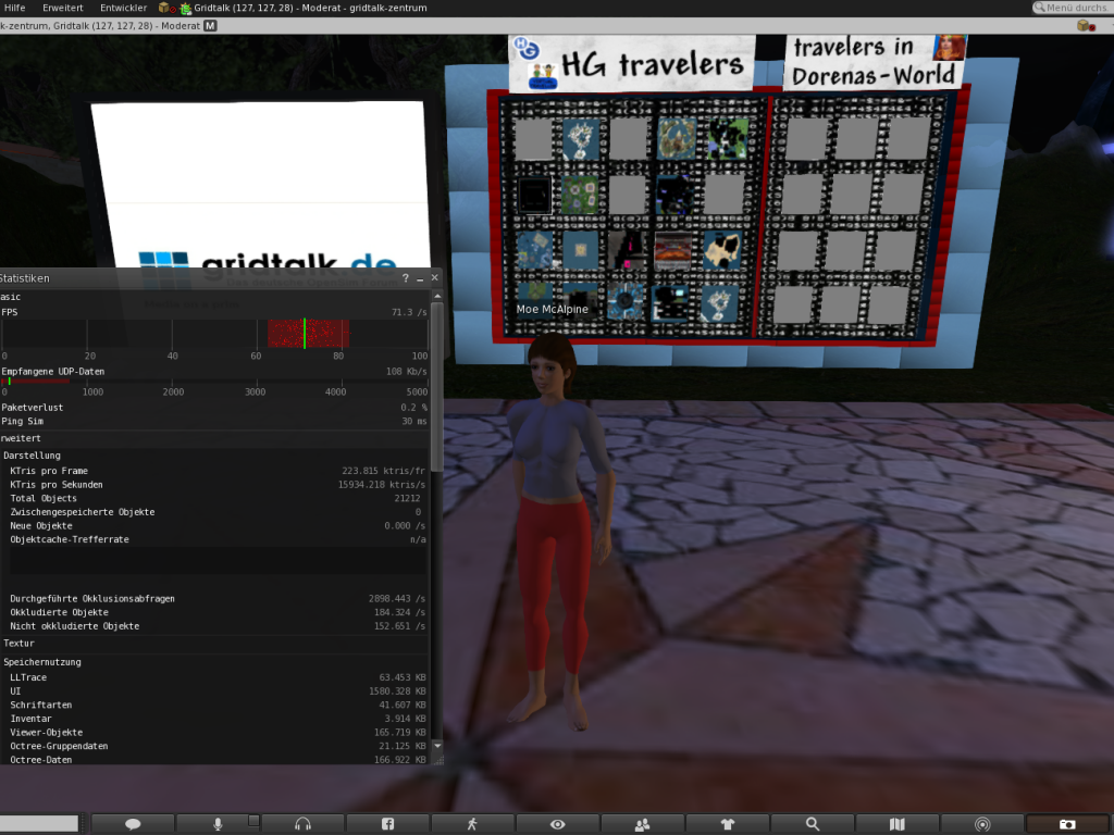 RE: Moelander-ein Aufbruch ins Ungewisse - Moe McAlpine - 24.11.2016 Phase 4: Nun aber hüppen Tja-hätte ich man sofort und gleich und überhaut… Denn es folgte: Internetausfall-keine Verbindung-miserable Verbindung- Ich berichtete bereits davon und das zog sich hin un hin und……..hin. Zuallervorerst hatte ich ja tatsächlich Bedenken mit meinem Herumfuhrwerkeln in den Router-und Rechnereinstellungen nun was kaputt gemacht zu haben. Watt weiss ich denn*schulterzuck* Nochmals überprüft – nee, das ist alles schon okay so und ich habe auch nicht die ganze Welt zu mir eingeladen. Dann aber regelmässig hoffnungsvoll die Verbindungen geprüft und nach ca. 1 Woche..tadaaaa……nun aber los………. Erleichterung – ich habe Verbindung, Texturen laden sich und Moe steht auf der tropischen Seite von Moelander. Soweit so gut – so bekannt. Nun mal rauskriegen, wie ich von hier in die weite Welt hüppen kann. Gewöhnungsbedürftig, aber machbar. Hatte mir vorher herausgesucht, wie sich so eine Adresse zusammensetzt. Ziel war klar: DorenasWorld –und die Adresse ist nun mal gut zu finden. Ausserdem schon eingerichtet – schmunzel. Dann mal los: Ruth hin oder her, das ist mir herzlich egal Knöpfchen drücken warten ------und….connection to…….guckst Du:Beweis Dann mal auf Dorenas World umgeschaut -Tja –und dann habe ich gleich Prominenz getroffen – guckst du nochmal: Dorena wohl auf Kontrollgang und Frau Karamel konzentriert am Basteln Die Zwei habe ich dann erstmal mit meiner Ruth erschreckt und meine Begeisterung kundgetan. Tja –und wurde reichlich beschenkt. Ruth sieht eben trotz aller Begeisterung etwas armselig und bemitleidenswert aus ![]() Danke Euch Beiden nochmal, ich hatte reichlich zu sortieren, packen usw. und konnte mich etwas entruthen. Dorena ist dann sogar fix zu Moelander und offensichtlich im ganzen Stück dort angekommen, hat per Chat Erfolg gemeldet und zurück. Ich war völlig aus dem Häuschen. Allerdings zu langsam um gleich mitzukommen. Fand die richtigen Knöppe nicht vor Aufregung. Am nächsten Tag bin ich weiter büschen rumgehüppt und habe mir einiges angeschaut. Etwas nervös war ich ja, zugegebenermassen. Ich wurde neben allerlei Kleidung und Haare allerdings auch gut mit Landmarken versorgt. Ausserdem habe ich den Bahnhof genutzt. Von dort klappte die Hüpperei sehr gut. Ich muss mich jedoch noch daran gewöhnen. Vor allem zurück war nicht immer einfach. Habe mir auch einen Skin besorgt. So siehts momentan entruthed aus. So ausgestattet habe ich mich noch weiter umgesehen. Viele Fotos habe ich leider nicht gemacht da ich mit umschauen beschäftigt war. Schuhe und andere Haare habe ich bis heute nicht. Bin irgendwie und überhaupt so gar nicht der Shopping-Mensch und als Fashinista kann man mich nun wahrlich nicht bezeichnen. Gesunde Eitelkeit, mehr nicht. Nach kurzer Zeit wird mir das zu mühsam, Energie Ende. Benötige für derlei Zeugs nur wenig Platz im Inventar. Sodele – das war das erste Abenteuer. Von Null auf Hüpp sozusagen. Kleine Hürden aber insgesamt eine machbare Sache. Dorena hat vieles vorbereitet über den ich mir (eigentlich) keinen Kopp hätte machen müssen. Als Anfängerin stolperte ich natürlich über Kleinigkeiten, die versierten OpenSimlern völlig selbstverständlich sind. Und dann ist da noch die Sache mit den Ports ![]() Was ich anzumerken habe: Es sah und sieht gar nicht aus wie Open Sim Das meine ich nun als Kompliment. Die Vorstellung hier wäre alles „alte olle langweilige angestaubte….“ Primbauweise und sähe aus wie SL Anno xy ist schlichtweg ein Gerücht. Zumal ich Prims nun auch nicht so schlimm finde. Was ich bisher so gesehen habe, hat mir sehr sehr gut gefallen. Ist doch interessant zu sehen, wie kreativ Menschen werden können, wenn Ihnen der Raum und die Möglichkeiten geboten werden. Merkwürdig ist, dass man sich (oder der Avatar) in (auf?) OpenSim irgendwie „anders“ fühlt als in SL. Obwohl ich kaum jmd. getroffen habe. Es wirkt alles etwas unbeschwerter, entkrampfter. Seltsam in einer virtuellen Welt, oder? ![]() Nun Schluss mit dem Gefasel. Abschluss Phase 4 -> Check Und viel wichtiger: -> ich hüppe CheckWas ich nun habe: -HomeBase auf meinem Rechner mit (momentan) 3 Regionen -Arriba-Minigrid Installation mit Anschluss- 1 Region Das Ganze heisst nun Moelander, die Region heissst immer noch Testis Arriba Ob und wie ich das ändere wird sich zeigen Tja, das war es bis hierhin. Ziel erreicht. Ich hüppe von meiner kleinen Insel aus, von meinem Rechner zuhause. Kann offensichtlich sogar besucht werden. Tolle Sache und für Anfänger, dank der guten Vorbereitung des Arriba-Paketes für den Start sehr gut machbar. Zum Nachahmen von mir sehr empfohlen und hier ist ein guter Start: Alles auf einen Klick zusammengestellt von Uwe Furse http://www.gridtalk.de/showthread.php?tid=1670 Herzlichen Dank an die vielen fleissigen Leute, die ihr Wissen teilen, um Anfängern wie mir, das OpenSim Leben zu ermöglichen und zu erleichtern. Danke an alle Erklärbären Ende? Nööö – unwahrscheinlich-nun geht’s bestimmt erst los Natürlich machen sich schon weitere Pläne und Ziele in meinem Kopp breit. Das bedeutet wohl, die Reise ist noch nicht zuende sondern tritt nur in eine neue Phase ein Der Anfang ist gemacht und ich bin echt froh, mich darangetraut zu haben. Berichte folgen Zunächst aber bin ich angekommen und unterwegs Habt Spass und gute Reisen Moe RE: Moelander-ein Aufbruch ins Ungewisse - LadyContessa Barbosa - 25.11.2016 Bist jederzeit herzlich willkommen bei mir auf PortVienna in Dorenas World wo ein großes Kreuzfahrtschiff im entstehen ist. Bei mir findest du auch massenhaft Schuhe und Haare :-) RE: Moelander-ein Aufbruch ins Ungewisse - Moe McAlpine - 11.10.2017 Wo ist denn Moe mit Ihrem Projekt? Stand der Dinge und Erklärung: Tja...neben Zeitproblemen treibt mich noch etwas anderes um und nach einigen Überlegungen dokumentiere ich das hier, da es nunmal meine Projekt-Dokumentation 