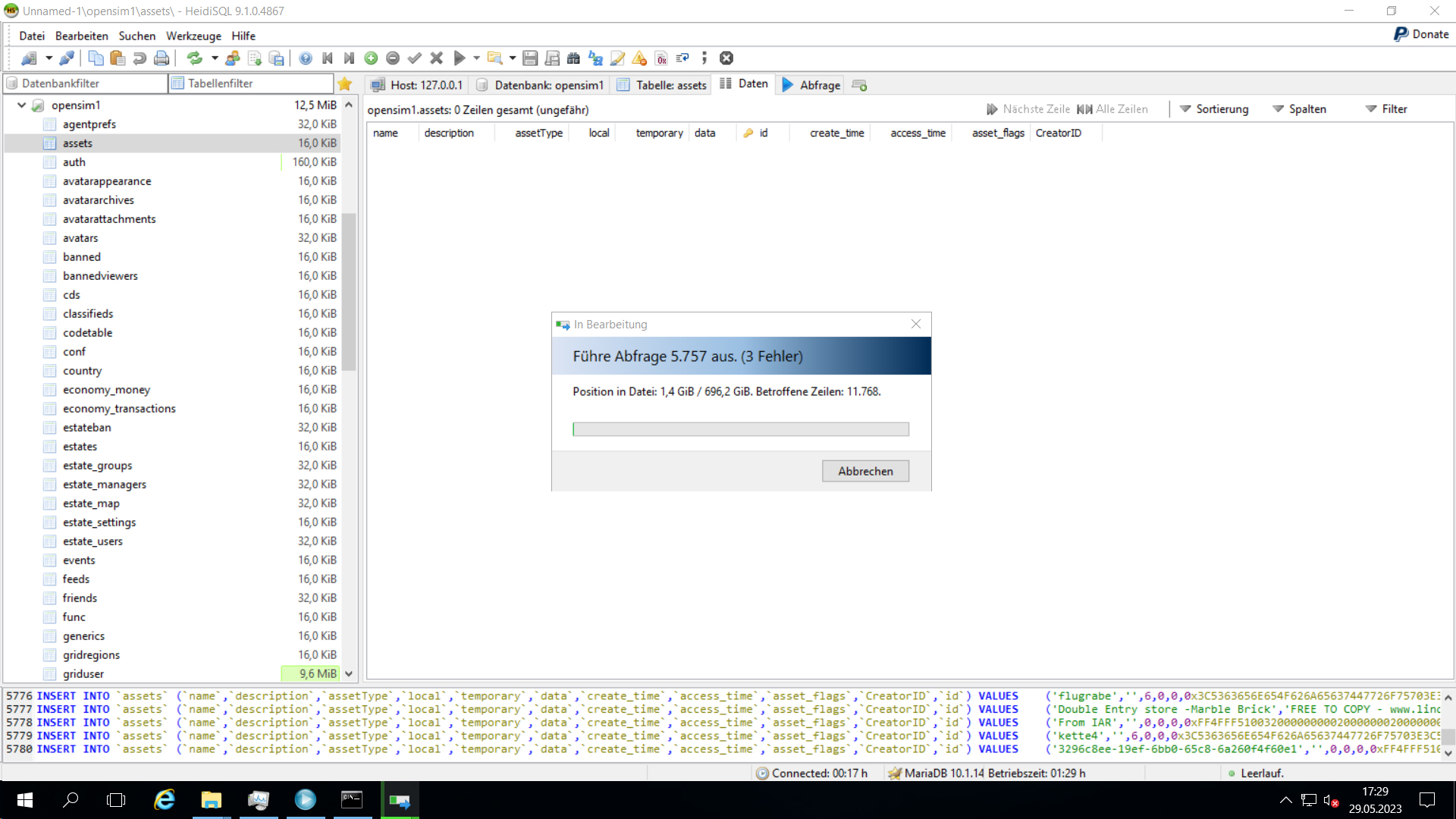 RE: Dorenas World Gridstatus - Sleimer Akina - 29.05.2023 Hey Leute, um Dorena etwas zu Helfen habe mich bereit Erklärt ihr zu Helfen, manchen wissen das sicherlich schon. Um der Stille mal eine stimme zu geben, das ganze ist echt kniffelig aber bin guter Dinge nach einpaar fehlschlägen bin ich nun soweit das vieles wieder rekonstruiert werden konnte und wieder am laufen is aber eben noch nicht alles, die assets sind noch ein großer kotzbrocken aber durch ein upgrade der datenbank tabellen auf den neusten stand der Technik, scheint es wohl aktuell zu laufen. Hier habt ein einblick ![]() nun heisst es 3654218 Kaffee trinken Streichhölzer zwischen den Augen stecken und abwarten ![]() in diesem sinne Prost ^^ RE: Dorenas World Gridstatus - Dorena Verne - 29.05.2023 Lieben Dank für deine Hilfe, Sleimer. Ich war mir nicht sicher, ob ich es hier öffentlich erwähnen darf, das du mir hilfst, deswegen blieb ich erstmal still.