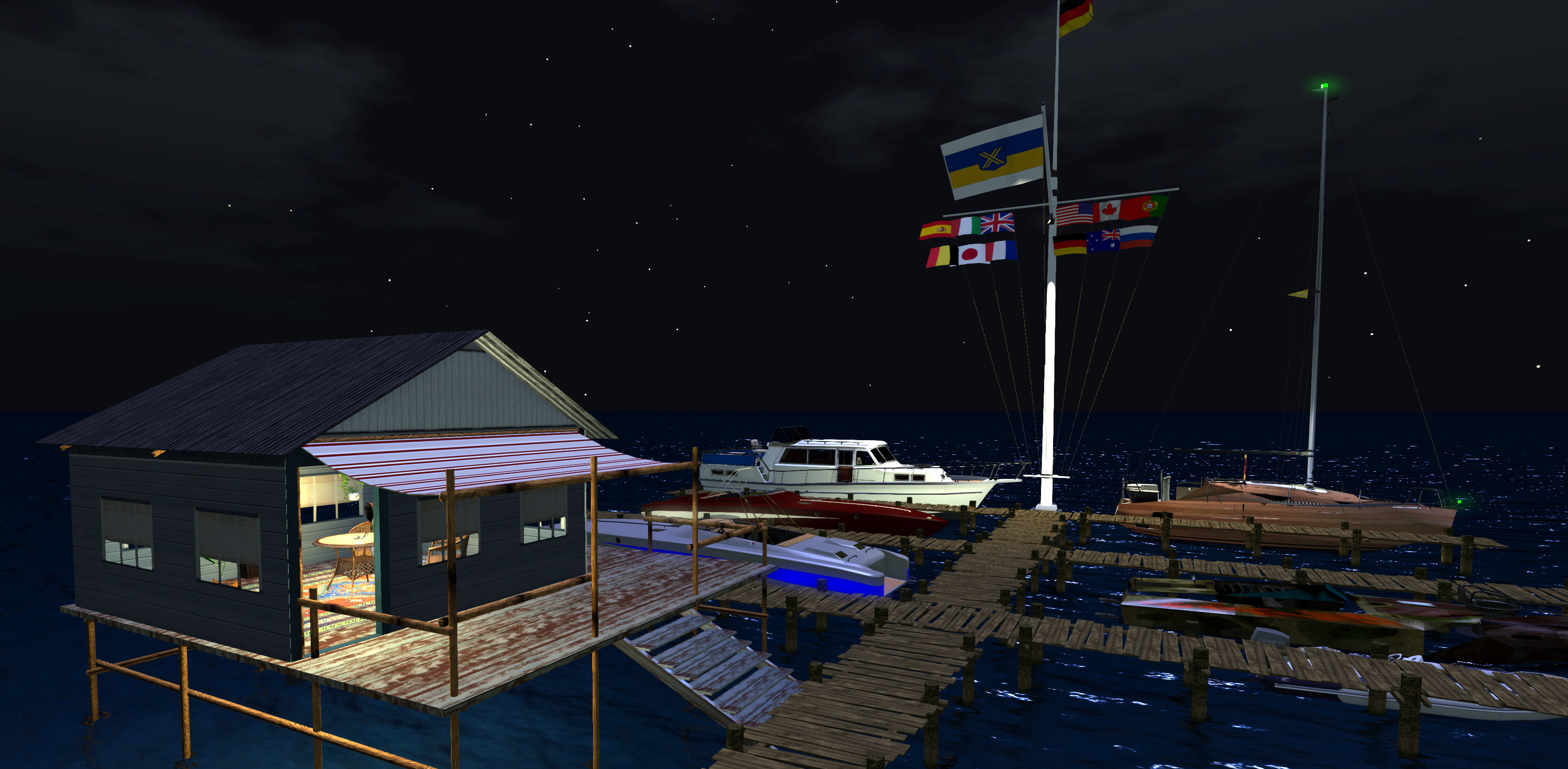 Segeln auf Xenolandia - Xenos Yifu - 07.07.2024 So, die Region etwas erweitert, auf 144 Sims, 10 qkm Segeln ohne Simgrenzen, herrlich. Kleinen Yachthafen angelegt und das Bootshaus bissi kuschelig eingerichtet. Mit interaktivem Tisch für paar Leckereien. Das Einzige, was mich ärgert, ist, das man keine Rezzzone mehr für Gäste einrichten kann, so das die ihre Boote rezzen könnten. Dank dieses Arschloches dessen Name nicht genannt werden soll, das uns die letzten Jahre davon überzeugte das man niemand mehr trauen kann. ![]() |