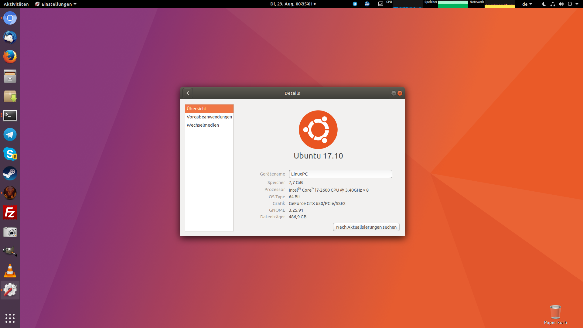 Mein derzeitiger Desktop, guckst Du (Fensterübersicht) : und so ohne was..(mit SystemInfo): in diesem Sinne: UBUNTU Lupopa