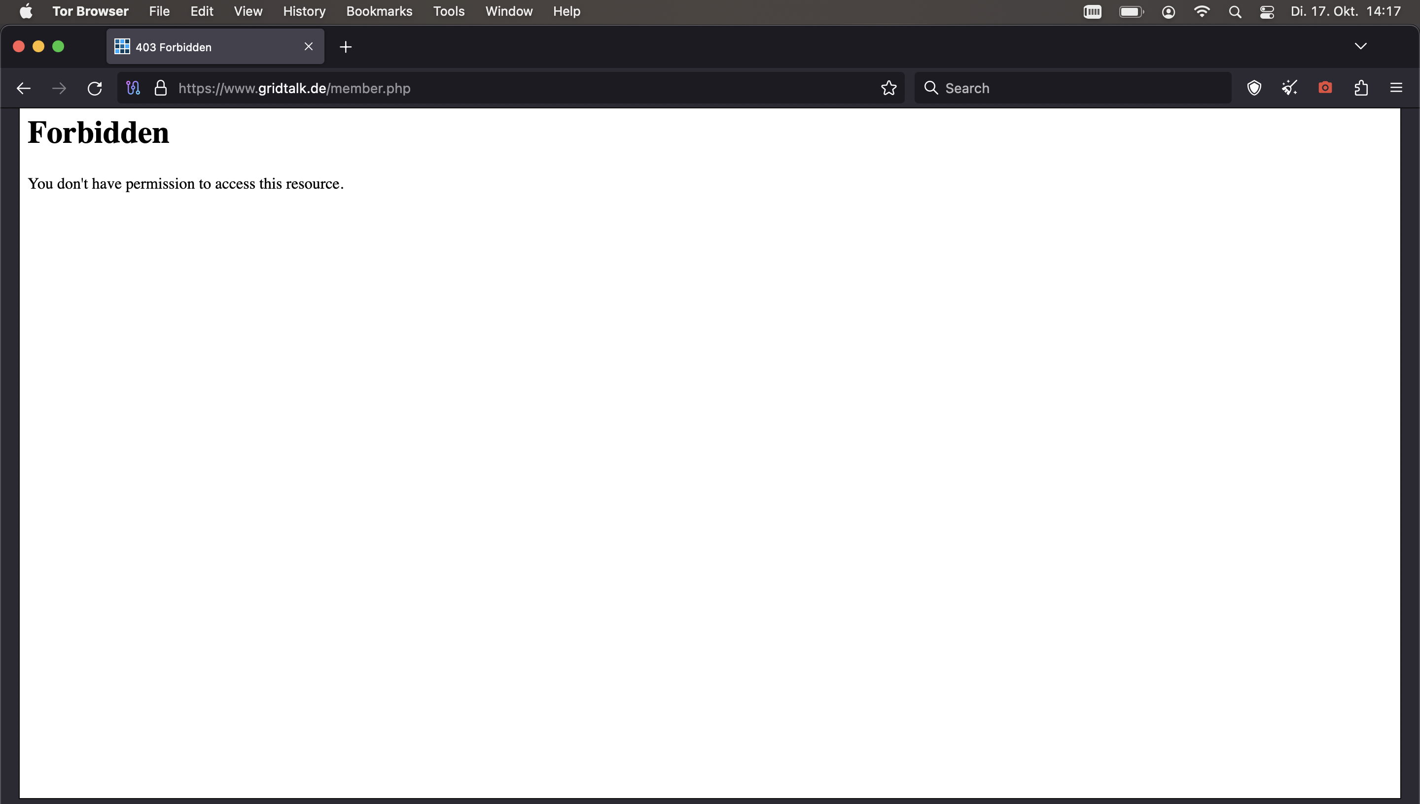 Dagegen, wenn ich Gridtalk aufrufe, sagt er mit gleich, dass die Seite nicht HTTPS sicher ist und wenn ich mich einloggen will mit Tor auf höchster Sicherheitsstufe (ohne Java scipt), dann sagt mir die Seite, dass access forbidden ist.
