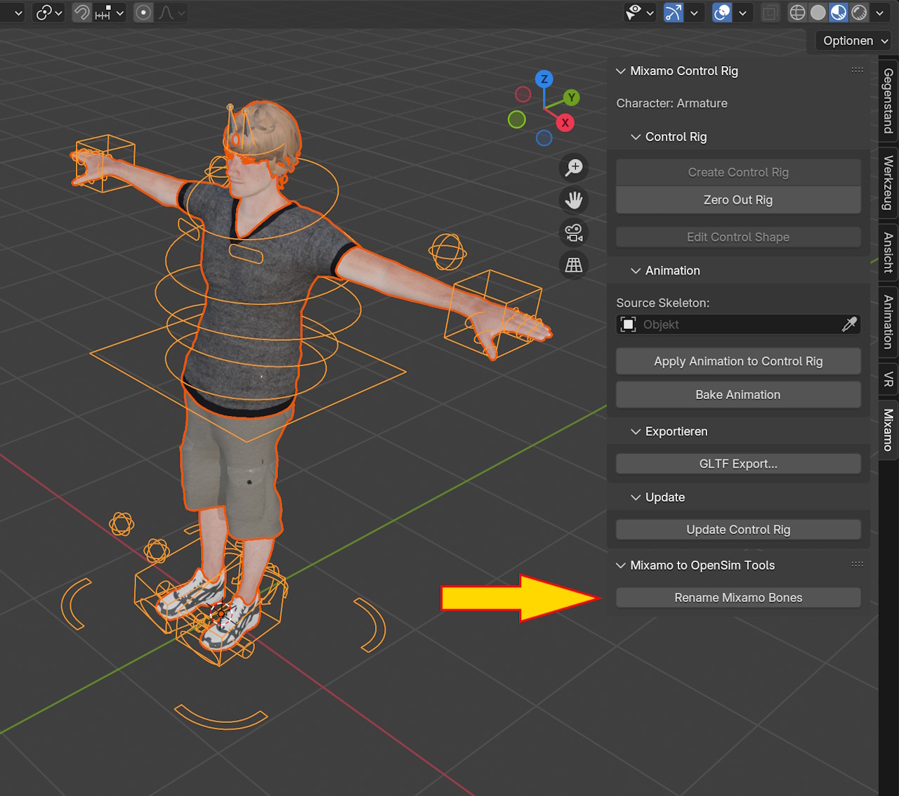 Wiederholt die Installation aber im entpackten Verzeichnis mixamo_blender4 und installiert mixamo_rename_opensim.py für das Umbenennen der Mixamo Knochen für OpenSim.