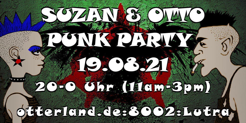 Morgen am Donnerstag, dem 19.08. ist es wieder so weit: Party im Otterland mit DJ Suzan und meiner Wenigkeit. Diesmal geht es um Punk & Co, Songwünsche sind willkommen! Bitte beachtet, dass es diesmal im Lutra-Club stattfindet (das ist die Nachbarsim). TAXI: Otterland.de:8002:Lutra