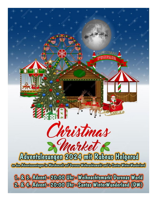 Am Sonntag den 8. Dezember gibt es die nächste Adventslesung mit Rubeus Helgerud. Ab 20:00 Uhr gibts Weihnachtsstimmung im Märchenzelt in Santas Winterwunderland (DW)