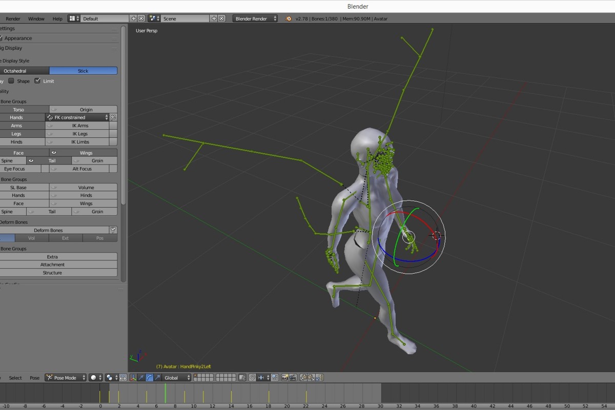 Skelett und blend-file kann man zum Experimentieren hier herunterladen: