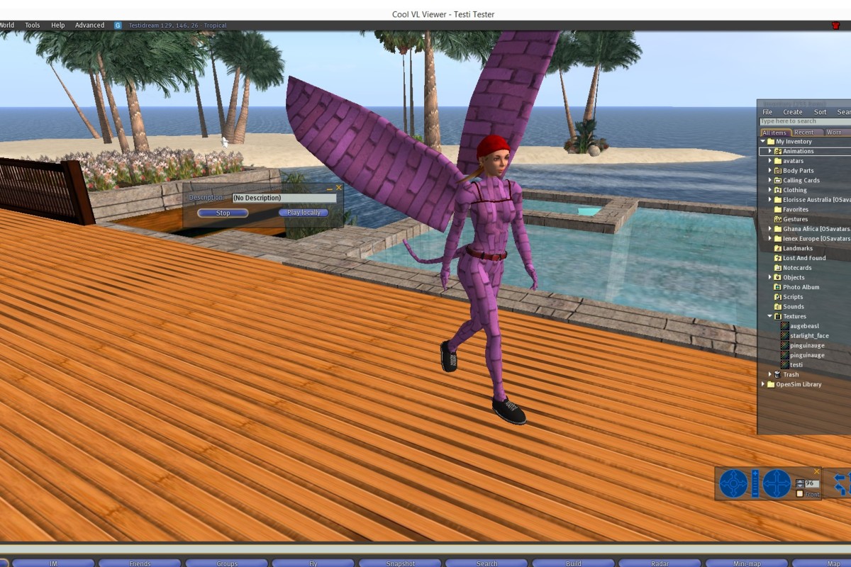 Die größte Revolution nach den Meshes dürfte wohl das Bento-Skelett sein. Mithilfe von fast 100 zusätzlichen Knochen können Gesichter und Hände animiert werden, und Vierbeiner können mit den Ohren wackeln und dem Schwanz wedeln. Wenn man Bento für Machinima verwenden möchte, entstehen ungeahnte neue Ausdrucksmöglichkeiten. Die Frage, wann das Bento-Skelett in Opensim verfügbar sein wird, lässt sich leicht beantworten: Jetzt und sofort. Einen Ordner rüberkopieren und einen bentotauglichen Viewer (Firestorm, Cool, Singularity) wählen, und es kann losgehen…