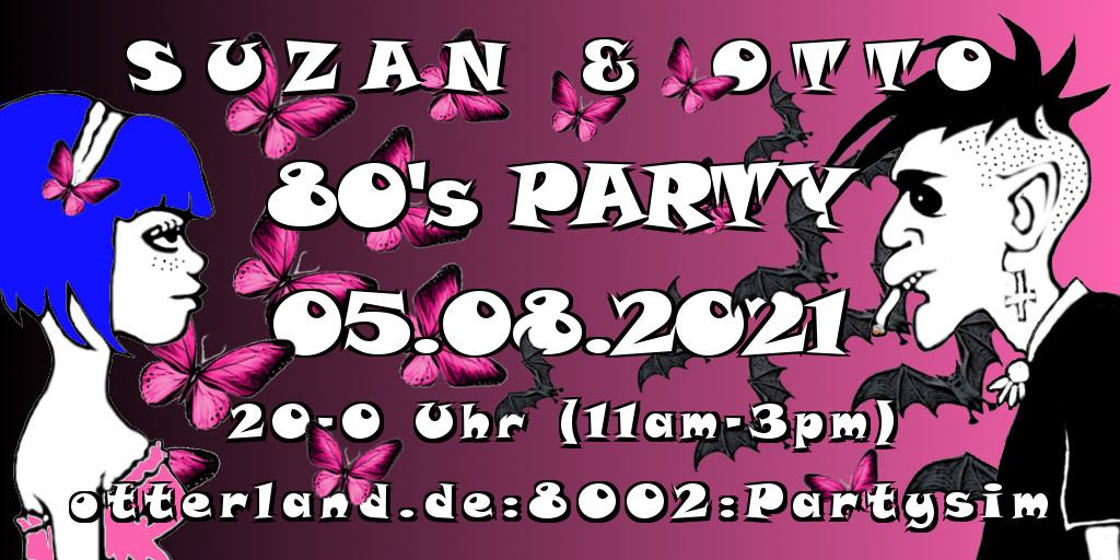 Morgen am Donnerstag, dem 19.08. ist es wieder so weit: Party im Otterland mit DJ Suzan und meiner Wenigkeit. Diesmal geht es um Punk & Co, Songwünsche sind willkommen! Bitte beachtet, dass es diesmal im Lutra-Club stattfindet (das ist die Nachbarsim). TAXI: Otterland.de:8002:Lutra