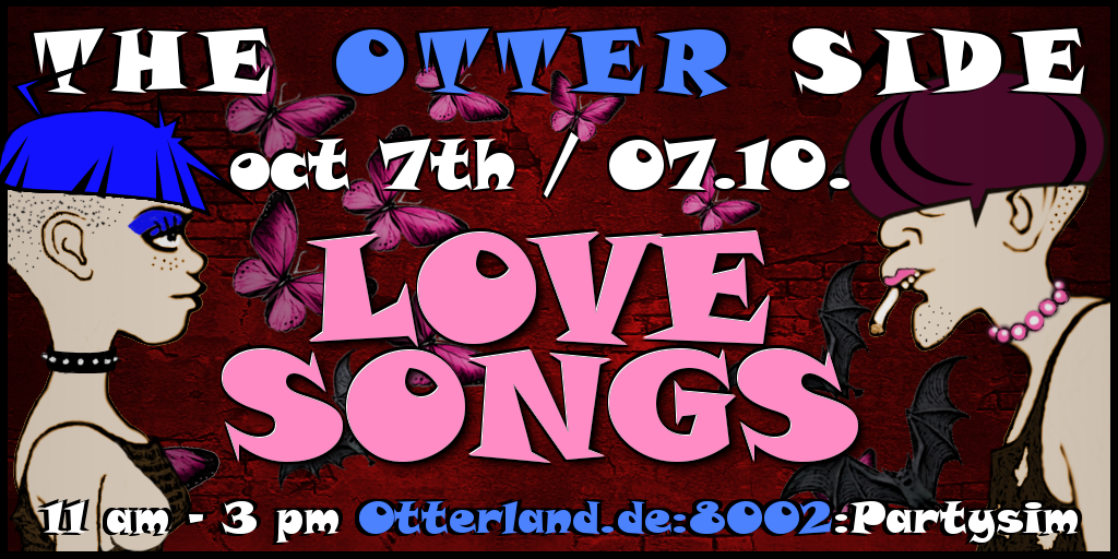 Diese Woche (30.09.) fällt die Party bei uns leider arbeits- und krankheitsbedingt aus. Also, wir sind nicht krank, sondern andere, und darum haben wir mehr Arbeit. Aber nächste Woche (07.10.) geht es weiter mit Love Songs. Ich melde mich dann nochmal. Eine schöne Restwoche!
