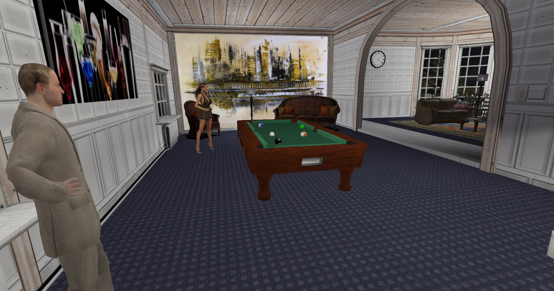 Ich habe das Fass von die Tage mit einem bequemen Sitzkissen (mit Sitzani) versehen (2p) und ein Lagerfeuer mit Steinkreis mit Rauch versehen (8p)