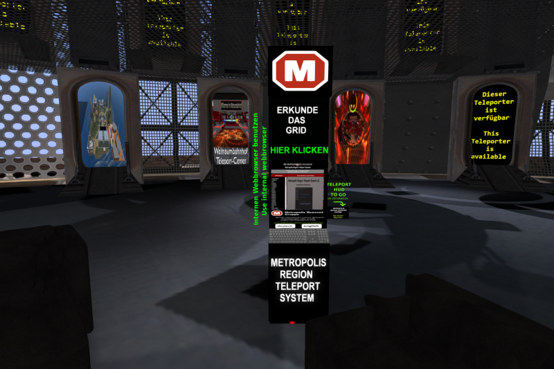 Meine Rundreise durchs Metropolis Metaversum möchte ich da beginnen, wo man normalerweise als erstes landet: auf der Welcome-Sim. Metro hat eine der ganz wenigen, wo man nicht auf plattem Land landet. Dieser spektakuläre Bau ist eine Kreation von Pixel Prim mit vier Stockwerken.