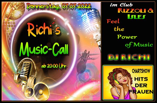 Bei Richi´s Music-Call hatte DJ Richi dieses Mal die "Hits der Frauen" dabei. Alles was Frauen gerne hören bzw. gehört haben. Eine klasse Zusammenstellung war das wieder und auch die Herren kamen auf ihre kosten. Wieder ein klasse Abend mit tollen Gästen und super Musik.