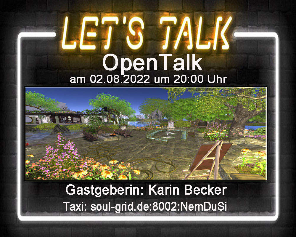 Dienstag ist wieder OpenTalk angesagt. Dieses Mal bei Karin Becker im Soul-Grid.