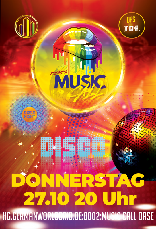 (24.09.2022, 17:04)Richi Rizzoli schrieb: Richi's Music Call, jeden Donnerstag in der Music Call Oase ab 20 Uhr. Am 29.09.2022 ist das musikalische Thema " Rock'n Roll".