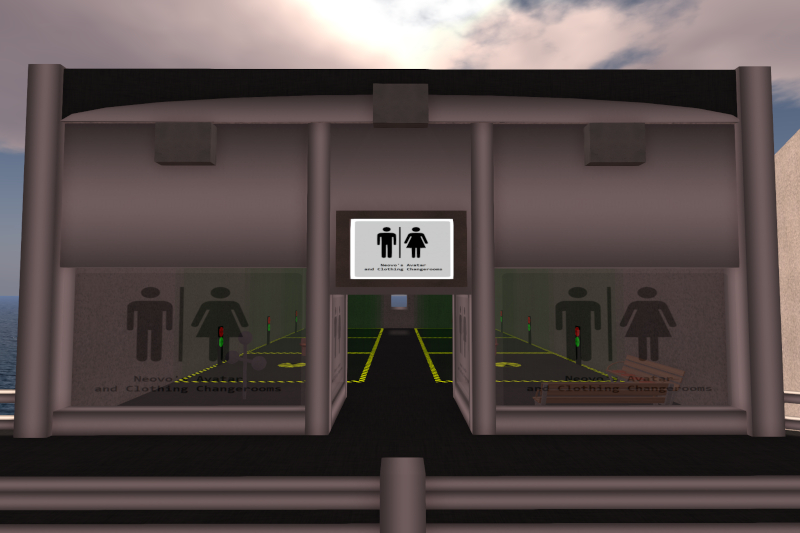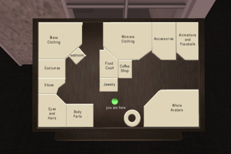 Aber irgendwas ist hier anders. Rolltreppen? Ein zweites Stockwerk? Tja, das hier dürfte noch die erste Version von Lindas Mall gewesen sein, bevor sie der Übersichtlichkeit halber das obere Stockwerk entfernte, einen eigenen Anbau für Möbel dranflickte und leider auch einen nicht unerheblichen Teil des Sortiments rauswarf. Die normalerweise einzeln angebotenen Haare und Augen gibt's hier nicht mal mehr in Sammelkisten. Das grüne Etwas ist übrigens Neovos Vorstellung von einem Fotostudio mit einfarbigem Hintergrund.